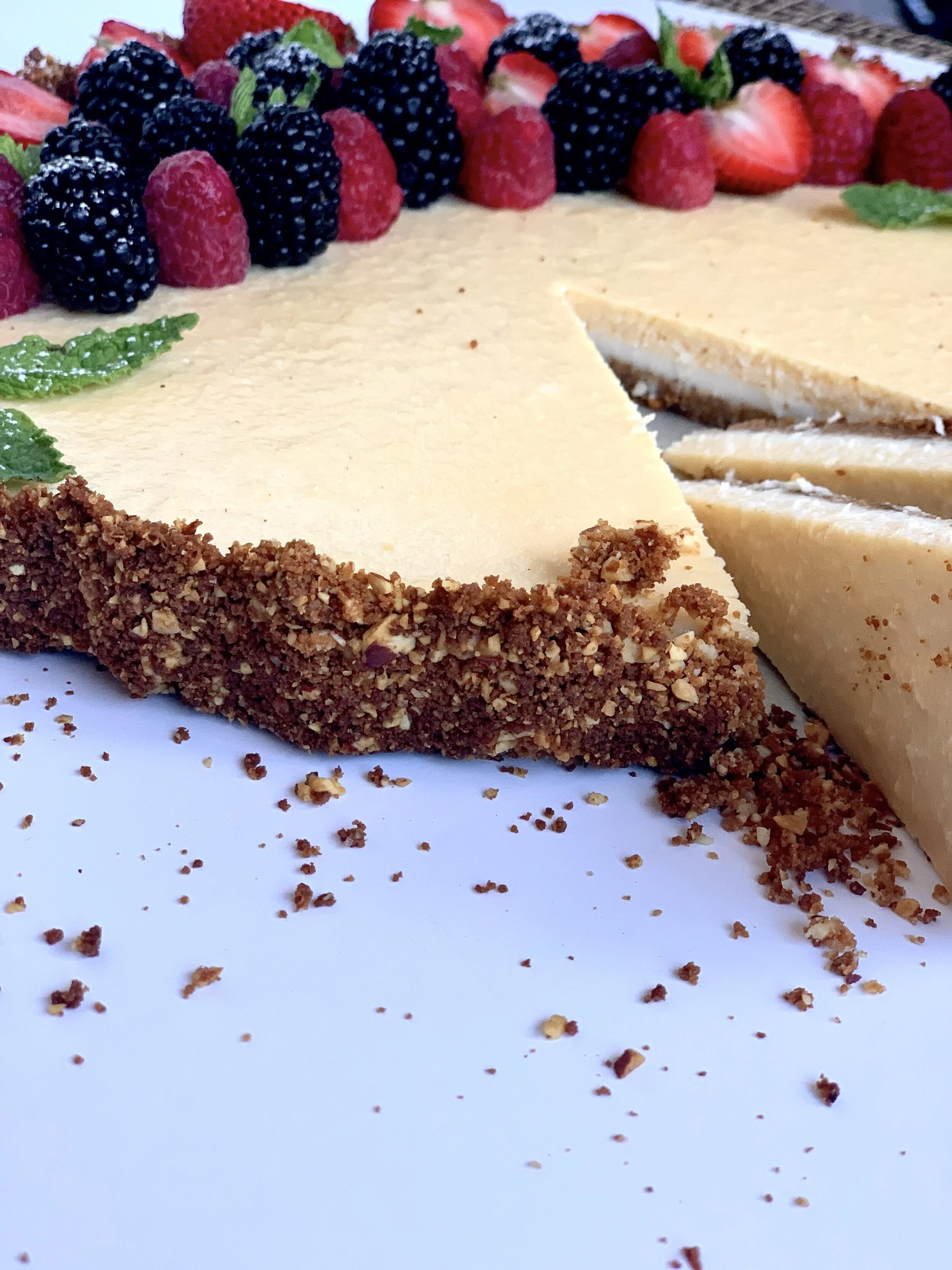 Berry Coconut Jun 19 Written By Cynthia B A walnut & dates crust, filled with a double-layered coconut cream topped with fresh berries. A Perfect dessert choice that is easily paired with a cup of rooibos tea or a glass of bubbly. Cynthia B